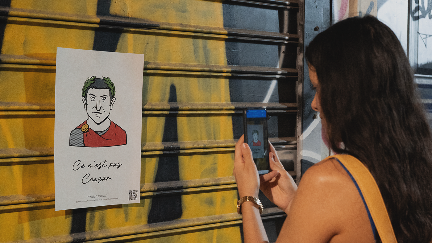 This personal project is a trilogy of animated loops in which three well-known human figures—from history, politics, and cinema (The Shining)—are morphed into objects that share their names. I also experimented with WebAR and designed three A3 posters: when scanned via QR code, each poster triggers the corresponding loop.